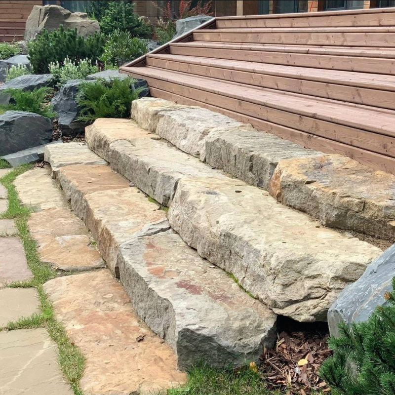 Ландшафтные ступени из природного камня благородны и аутентичны. Элегантная естественность их дизайна, текстур и цветовой палитры не требует дополнительного декоративного оформления, зато кардинально преображает любую территорию. Песчаник – натуральная горная порода с 90% содержанием кварца. Экологически чистый материал хранит в себе первозданную энергию монолитов, образованных миллионы лет назад.